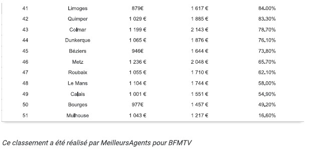 Palmarès des 51 villes où le prix au m² à la plus augmenté